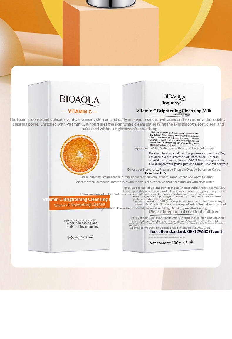 BIOAQUA Vitamin C Brightening Cleansing Milk For Skin Care